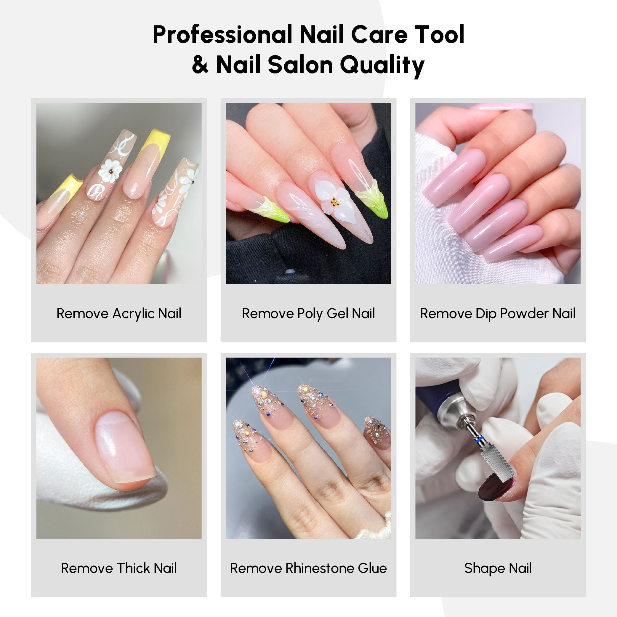 - Medium (M): Ideal for refining thicker layers like Acrylic, Dip Powder, or Builder Gel. It’s also effective for removing gel polish.