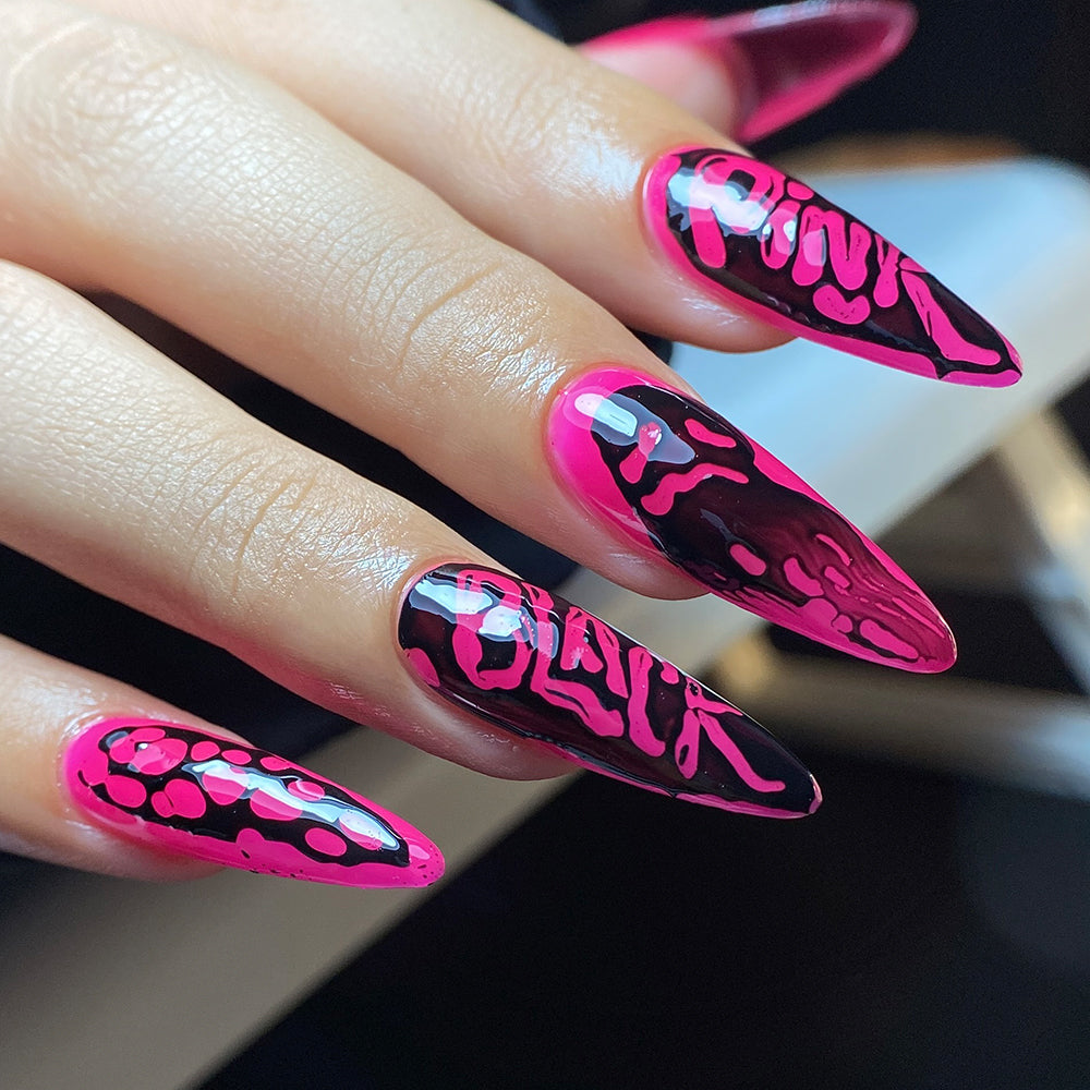 Start by applying LAVIS Magic Base Gel and curing for 60 seconds. Then, apply your chosen LAVIS Magic Color Gel and, while it’s still wet, use a dotting tool to sketch your design directly into the gel.
