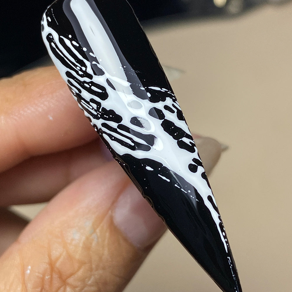 Be sure to wipe the tool clean between each stroke to keep your artwork crisp. Once the bloom effect reaches your desired look, cure to lock in the design. Finish with a top coat for a smooth, lasting finish.