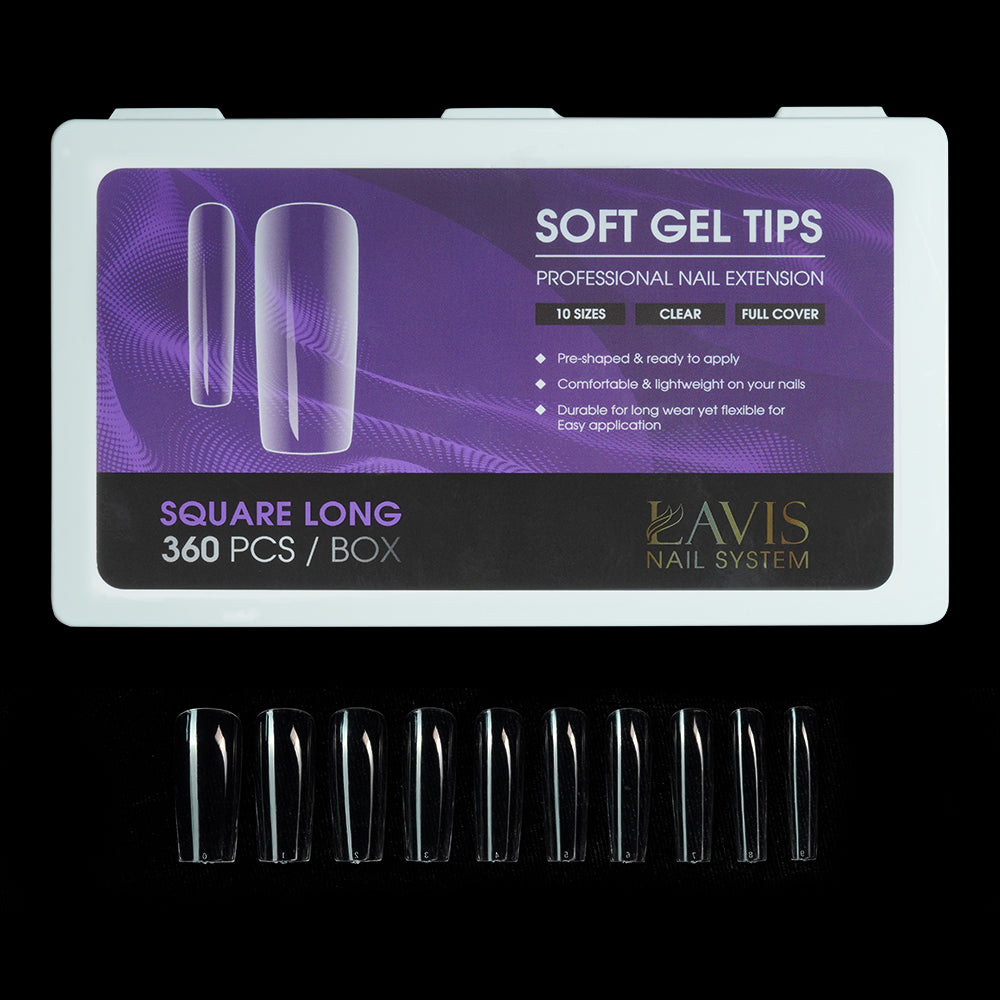 LAVIS Square Long - 10 Sizes Clear - Soft Gel Tips