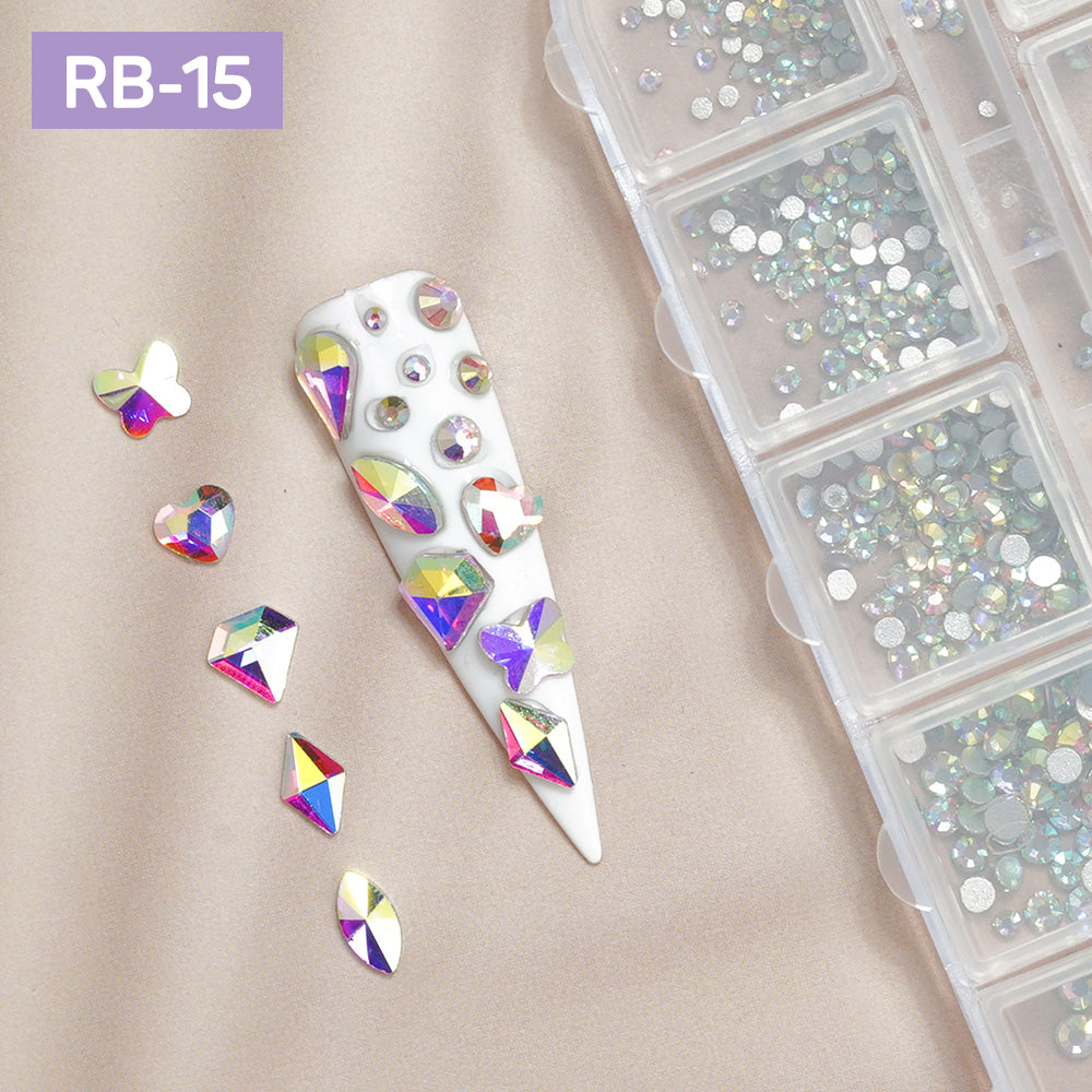 12 Grids Flatback Rhinestones RB-15 AB
