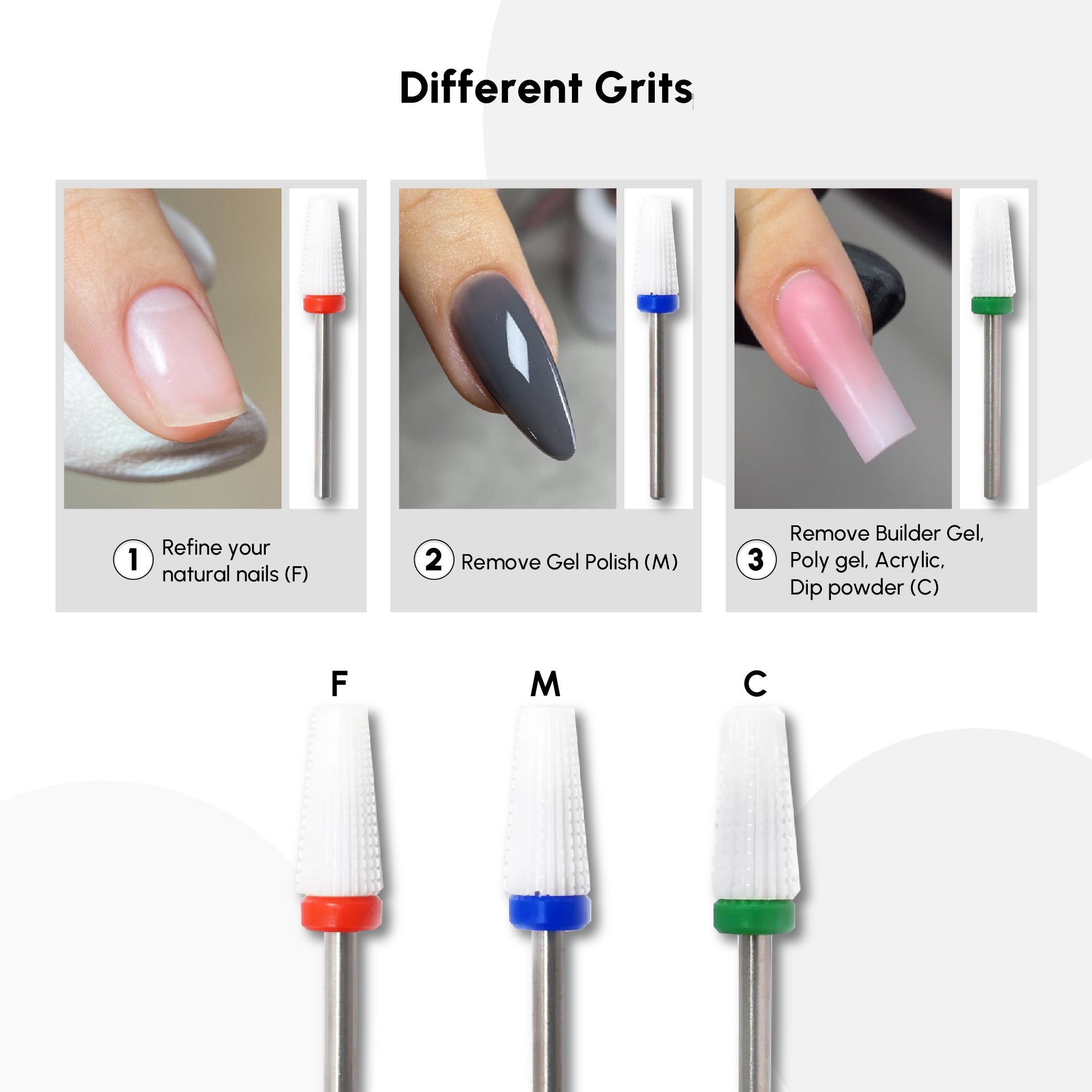 - Fine (F): Light refinement, gentle buffing, and cuticle cleaning.
