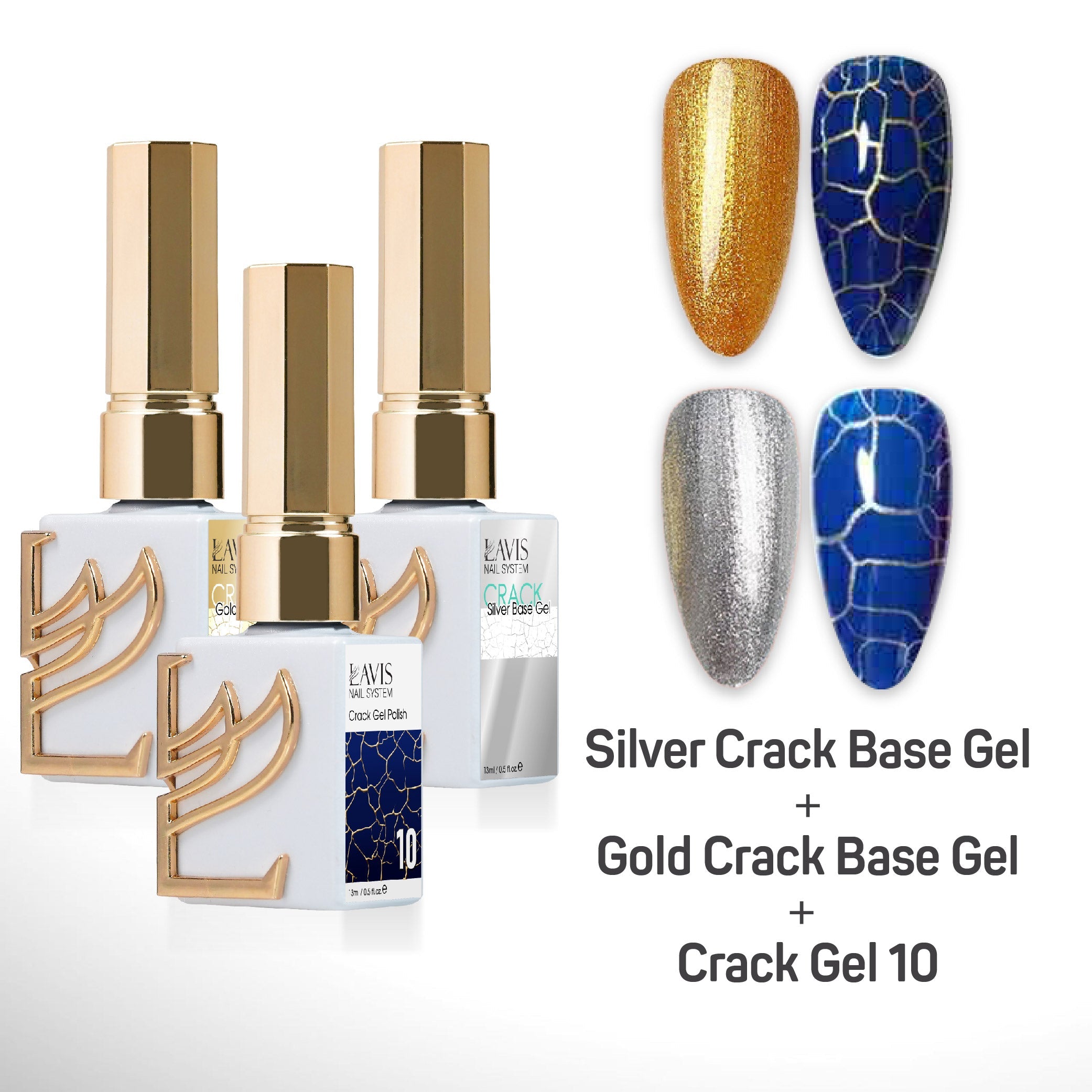 - LAVIS Crack Gel 10 + Silver Crack Base Gel + Gold Crack Base Gel - 0.5 oz