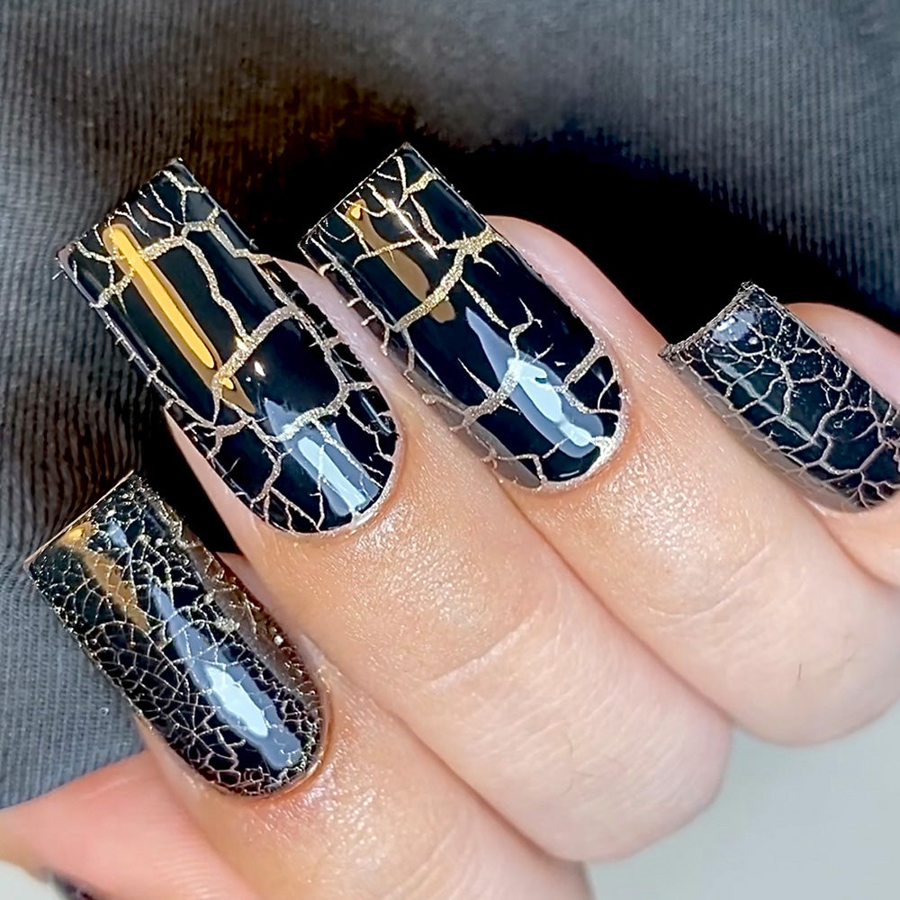 Start by applying LAVIS Crack Base Gel in your choice of Gold or Silver for a metallic foundation. Cure for 60 seconds under LED/UV light. Then, apply your chosen LAVIS Crack Color Gel directly over the base — no curing yet! Simply wait a few minutes as the magic happens and cracks begin to form naturally. Once you've reached your desired level of cracking, cure to set the effect. Finish with a top coat for a long-lasting, high-impact finish.